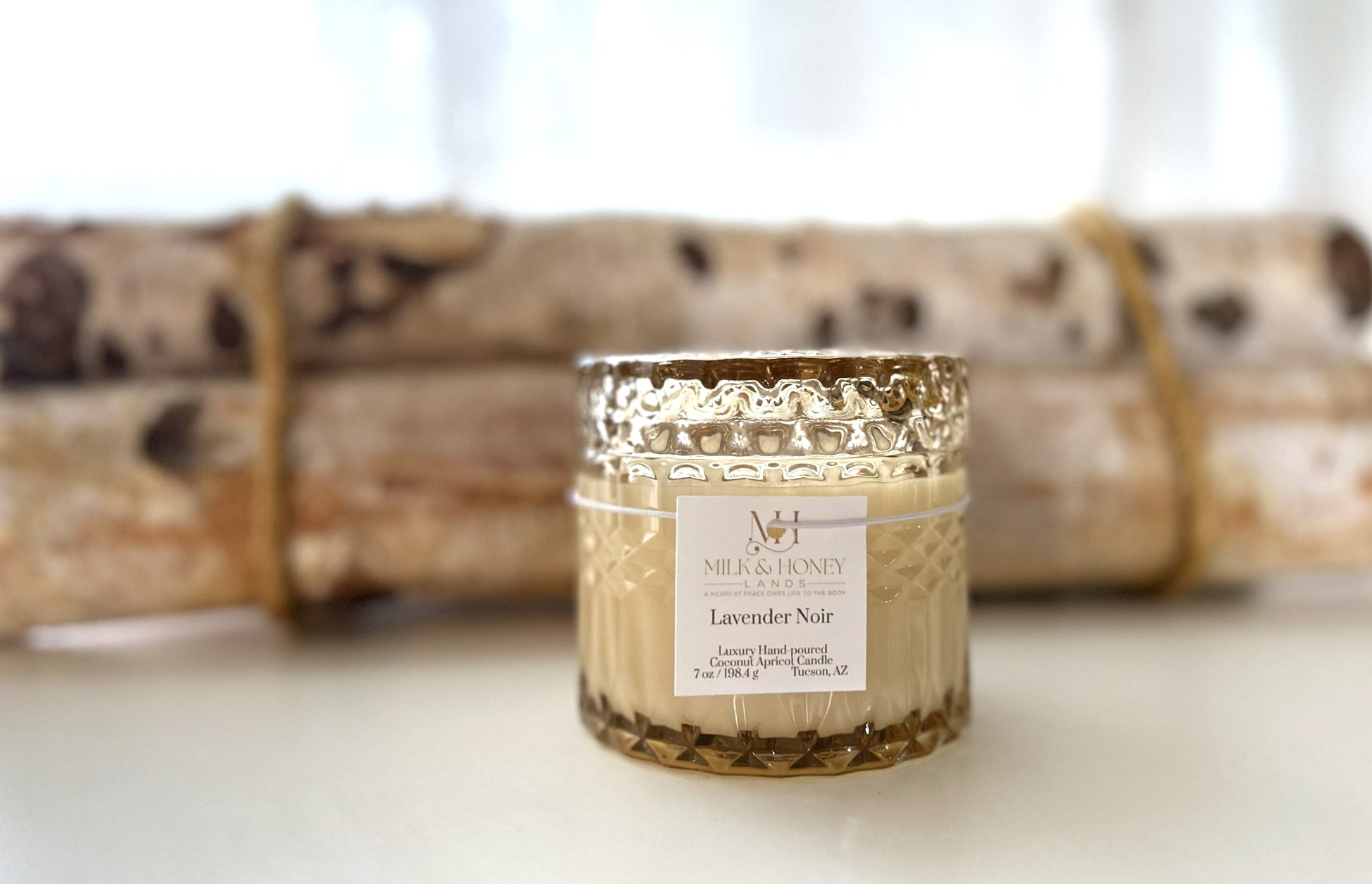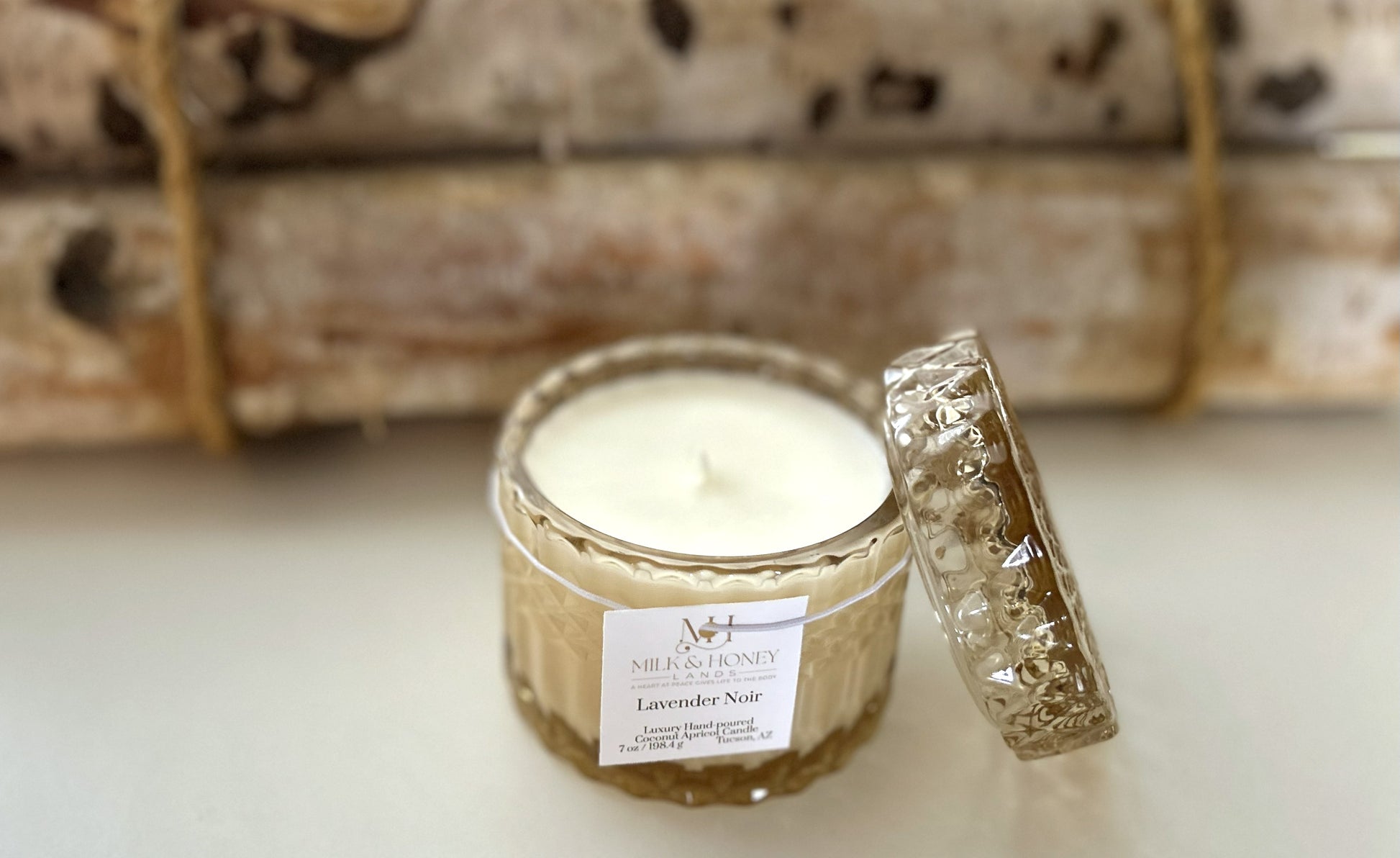 Crafted from premium-grade, eco-friendly coco apricot creme wax—a natural blend derived from apricot and coconut—the Lavender Noir candle guarantees a clean and even burn. This advanced wax formulation enhances the candle’s scent throw, ensuring that captivating fragrances permeate the room and deliver an extraordinary sensory experience. The smooth, creamy base provided by the coco apricot wax allows the fragrance notes to stand out, enriching the overall candle experience for enthusiasts.